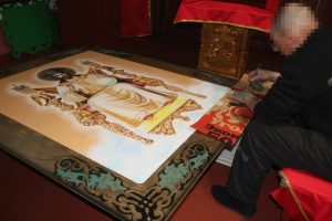 Тре́тье свети́ло пеще́рное,/ прогоня́ющее тьму бесо́вскую,/ восхваля́ем тя, му́дре,/ и по до́лгу чтим труды́ и по́двиги твоя́,/ я́же подъя́т о ста́де свое́м/ и о украше́нии церко́внем,/ воззыва́юще ти усе́рдне си́це:// ра́дуйся, о́тче Ни́коне, красото́ церко́вная.