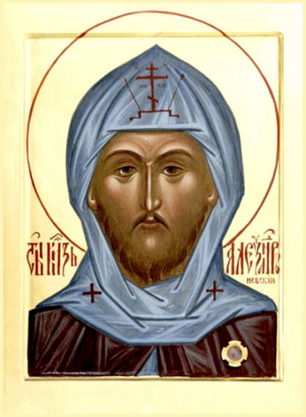 Св. блгв. кн. Александр Невский (1221–1263) ‒ новгородский князь, великий полководец и дипломат. Прославился победами над шведами на Неве (1240) и немецкими рыцарями на Чудском озере (1242), защитив Русь с запада. Мудрой дипломатией обезопасил страну от разорения с востока, укрепив отношения с Золотой Ордой. Принял монашеский постриг перед смертью. Канонизирован в 1547 году. Мощи покоятся в Александро-Невской лавре в Санкт-Петербурге.