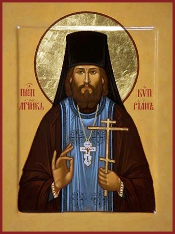 Прмч. Киприан (Нелидов, 1901–1934) – сын дворянина-врача из Казани. После службы в армии принял постриг и был рукоположен в иеромонахи (1925). Служил в Казахстане, затем в Москве, где жил в квартире епископа Варнавы (Беляева). Арестован в 1933 г. за «создание нелегального монастыря». Осуждён на 3 года лагерей. На Алтае, в лагере на Бийском тракте, работал кладовщиком, но за честность был оклеветан и отправлен в штрафную зону к уголовникам. Скончался 16 июня 1934 г. в лагерном лазарете, поразив даже заключённых кротостью и верой. Погребён в ущелье Коркучи (могила неизвестна).