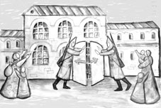 Барак замирает. Большинство барачных равнодушно-привычно наблюдают за происходящим. Но души тех, кто знает отца Григория, содрогаются от неожиданности и ужаса, от произвола и разнузданности и от чувства собственной незащищенности. На лице Стехи застыл мертвый оскал, подобно навечно приросшей к нему маске. В остекленевшем взоре — смесь ликования, подобострастия и необъяснимого страха. Он кидается за орудием убийства — стамеской, отточенной до остроты бритвы. Она припрятана где-то внутри барачной печи. Отец Григорий только успевает осенить себя крестным знамением и призвать на помощь Царицу Небесную.