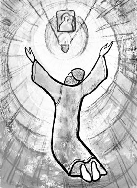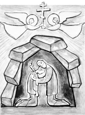 Он был весь в молитве, перестав даже думать о себе. Он был на кресте.