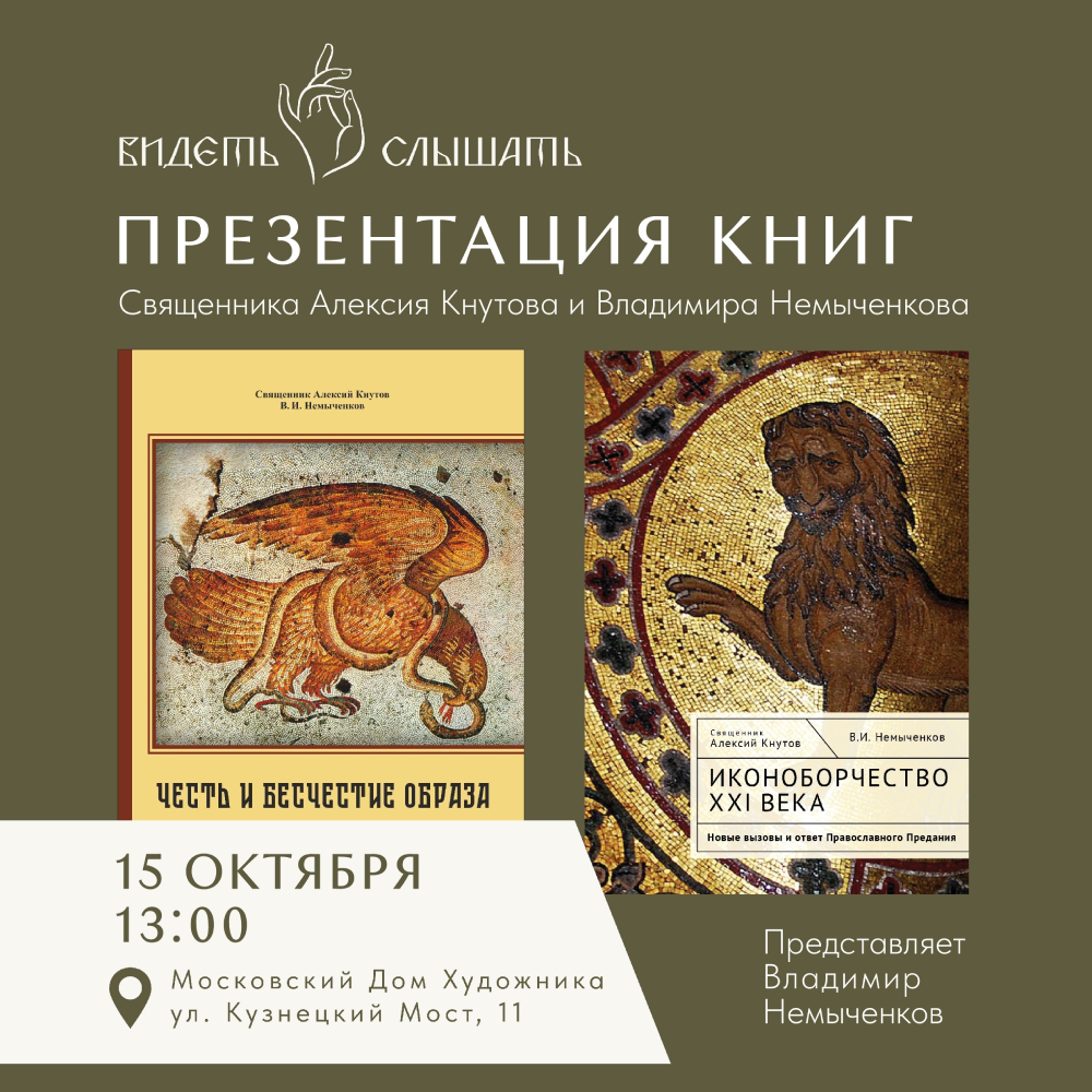 15 сентября в рамках фестиваля «Видеть и слышать» состоится презентация книг священника Алексия Кнутова и Владимира Немыченкова «Иконоборчество XXI века: новые вызовы и ответ Православного Предания» и «Честь и бесчестие образа: Рекомендации по благочестивому обращению со священными изображениями».
