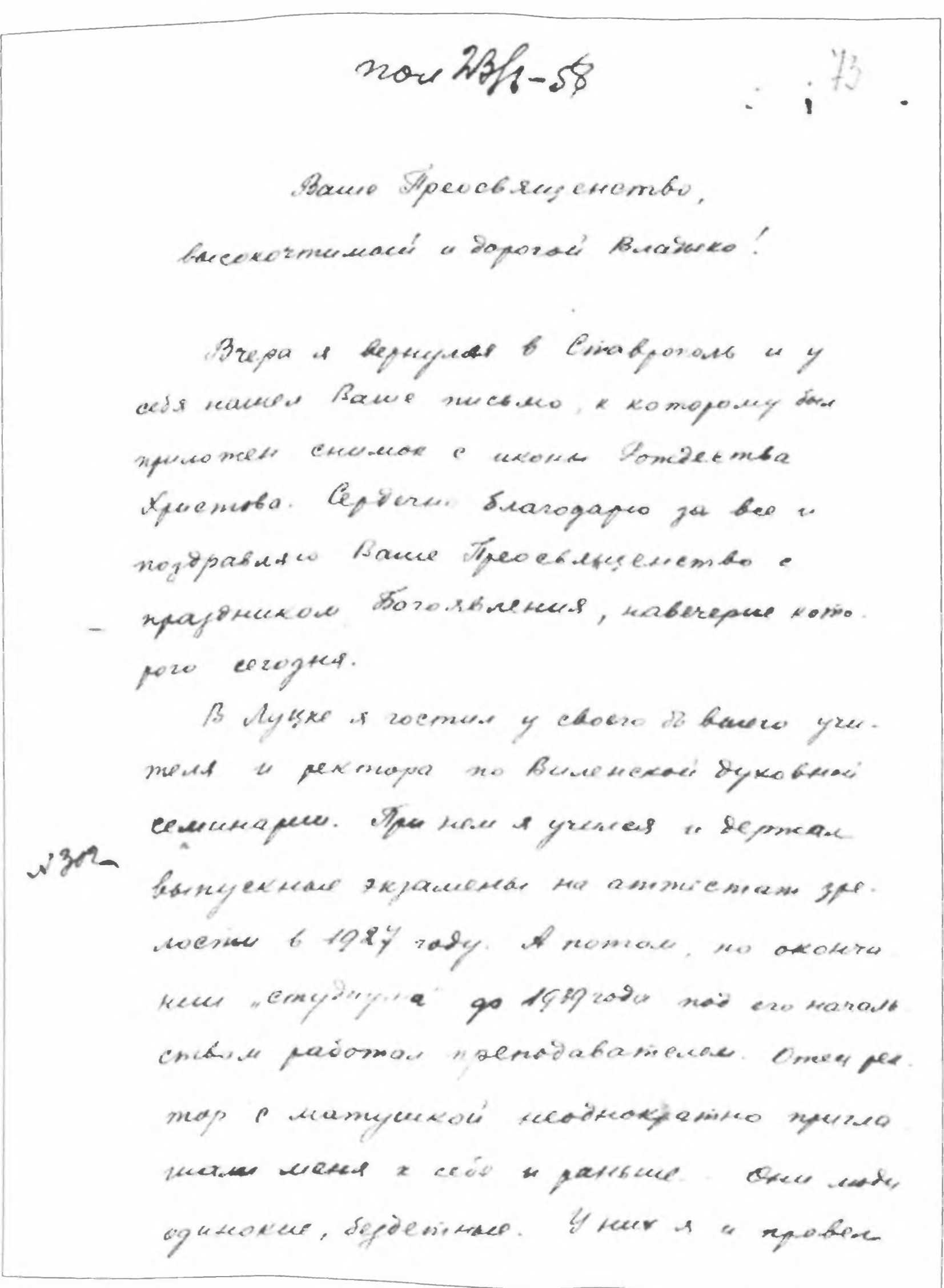 Над этими словами вставлено рукой епископа Афанасия – «Догматов истолкователь». Далее в письме все пометы принадлежат епископу Афанасию.