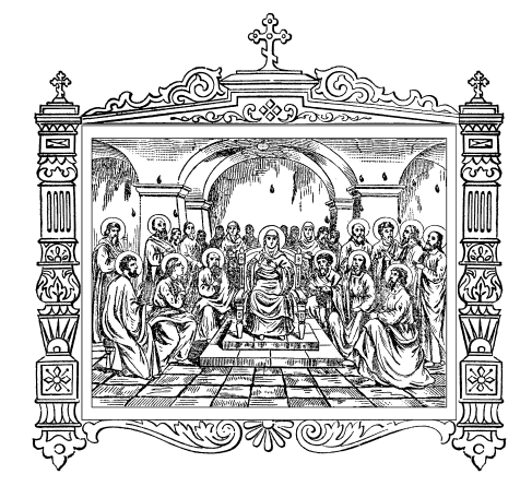 После вознесения Господня апостолы возвратились в Иерусалим. Тут они беспрестанно собирались на молитву и с верой ожидали Духа Святого, обещанного им от Бога Отца. Всех верующих было около ста двадцати человек; с ними находилась и Матерь Божия и некоторые святые жены.