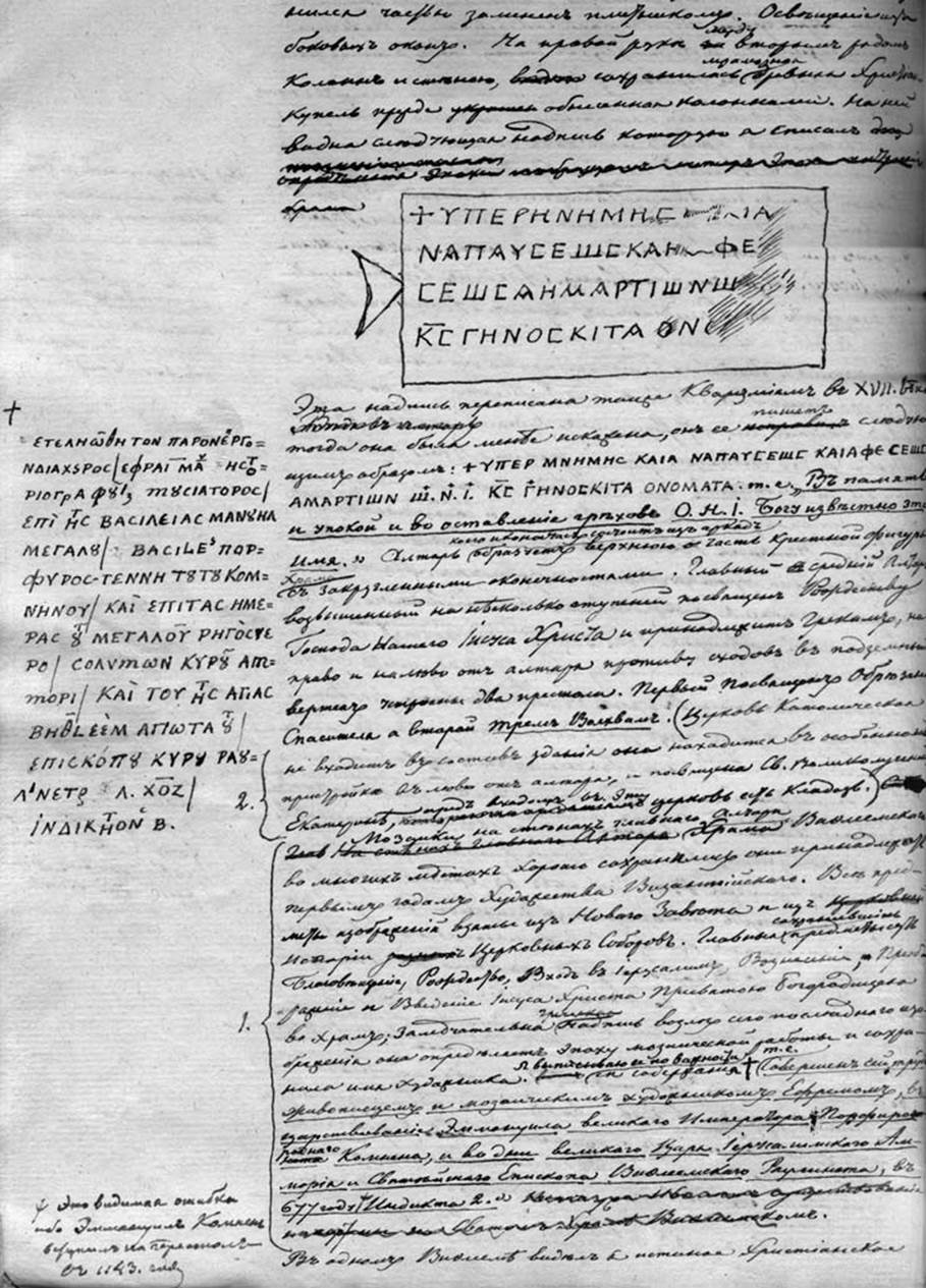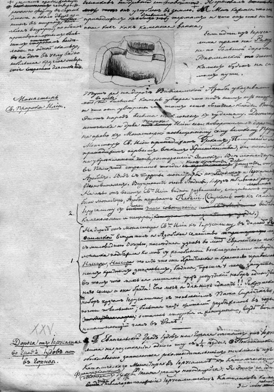 Фрагмент рукописи А. С. Норова с рисунком колодца возле монастыря Св. Илии