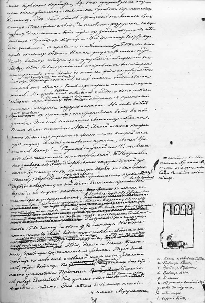 Лист рукописи «Путешествие» с планом гробницы Иоанна Крестителя