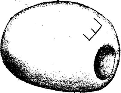 Этот единственно известный еврейский талант найден в недавнее время африканским миссионером патером Кре (Сге), близ свяшенной ограды храма Иерусалимского. Он представляет грубый округленный камень, сходный с громадным арбузом; одна из вершин его выдолблена и углублена в форме разреза; один из боков его слегка сплюснут. Его вес состоит из 42 килограммов. Он имеет надпись древними еврейскими буквами, которую видим на факсимиле внизу рисунка; отдельиая буква находится на противоположной стороне разреза.