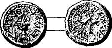 Они носят 623 с одной стороны надпись древне-еврейскими буквами: Израильский сикль или полусикль, с обозначением даты, и по бокам: св. Иерусалим, или освобождение Сиона. В исполнение закона, ни одна из этих монет не имела человеческого изображения; но на двух сторонах изображались то ваза и цветущая ветвь, то пальма, несколько колосьев, виноградная кисть и т. п. Последние иудейские монеты – монеты царя Агриппы и Варкохеба. 624 Их стоимость была одинакова с ценностию обозначенных нами выше сиклей. По разрушении Иерусалима, римляне приказали вычеканить несколько монет, представляющих по бокам плененную Иудею под образом женщины, сидящей под пальмою.