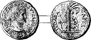 Лицевая сторона этой монеты представляла увенчанную лаврами голову императора Тита. Надпись: Т. CAES. IMP. AUG. F. TR. P. COS. VI. CENSOR. – Ha обороте: Иудея, сидящая в слезах, на щитах у пальмы; позади – броня, щит, шлем и знамя; вокруг надпись: IUDAEA САРТА, внизу медали буквы: S. C. (Senatus consulto). (77 или 78 года нашей эры).