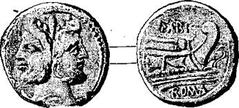 Бронзовый as Фабия Бутео носит с лицевой стороны изображение увенчанной лаврами головы Януса. – На оборотной стороне: нос корабля, смотрящего вправо, на котором сидит птица, называемая buteo (цапля или аист); надпись: FAB1 ROMA. Монета относится к 89 г. до Рождества Христова.