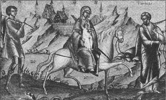 Иосиф немедленно повиновался; Пресвятая Мария также не медлила покориться извещению обрученника своего. В ту же ночь Иосиф и Пречистая Матерь, взяв на руки Предвечного Младенца, отправились в Египет. Их сопровождал Иаков, старший сын Иосифа. Они отправились в путь, не тревожась предстоящими опасностями и затруднениями его, предоставляя Богу распоряжение о своей судьбе; они заботились только о безропотном послушании воле Его.
