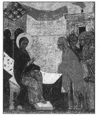 Долго не имея известия о Богоматери, Лазарь сильно сокрушался, но вскоре печаль его обратилась в великую радость: он увидел наконец благодатную Посетительницу. Она привезла ему в дар омофор15 и поручи, устроенные для него Её пречистыми руками. Утешив Лазаря и благословив верующих, Преблагословенная Мария возвратилась в Иерусалим. В это время, по прошествии тринадцати лет после вознесения Христа, Пресвятую Деву посетил Дионисий Ареопагит, желавший получить от Неё благословение и наставление. Она всех принимала, всех утешала, исцеляла больных, исправляла грешников, сокрушённым давала надежду. Обрадованная Богом радовала людей.