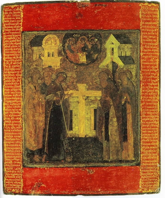В 1446 году великий князь Василий Васильевич, будучи захвачен в Сергиевой Лавре войсками Димитрия Шемяки и князем Иоанном Можайским, заперся в храме Св. Троицы. Услышав, что его ищут, он отпёр южные двери, взял эту икону и встретил князя Иоанна в дверях церковных, говоря: «Брат! Мы целовали Животворящий Крест и сию икону, чтобы нам не мыслить зла друг на друга». Князь Иоанн дал обещание не делать ему зла. Тогда великий князь поставил икону на прежнее место.