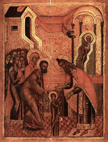 Чудотворная икона Введения во храм Богородицы находится в Серпуховском Владычном женском монастыре, в каменной церкви, освященной в 1360 году митрополитом Московским Алексием, в честь Введения во храм Пресвятой Богородицы. По повелению святителя Алексия в 1377 году написана была икона Введения во храм в том виде чудесного явления, которого удостоился ученик его, строитель монастыря прп. Варлаам. Икона сия благоговейно почитается чудотворною в продолжение более 500 лет и доныне не иссякает от нее источник благодатных исцелений и чудотворений.