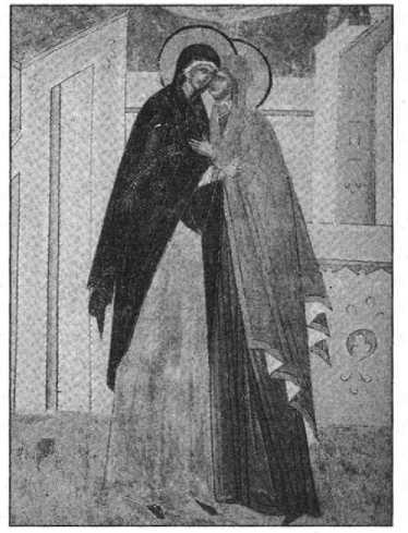 Фреска «Встреча Марии и Елизаветы» начало XVI в. Ферапонтов м-рь.