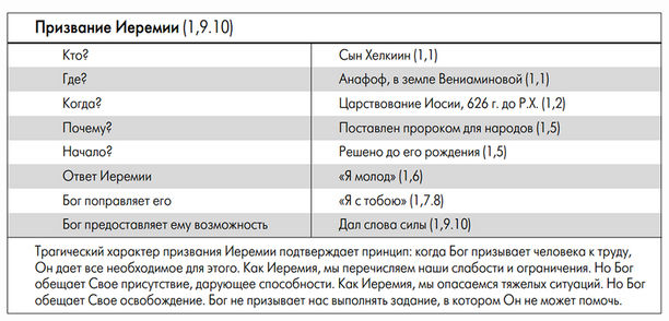 1:1–19 Господь призывает Иеремию на пророческое служение, дабы провозгласить Свой суд над иудеями, поклоняющимися чужеземным богам.