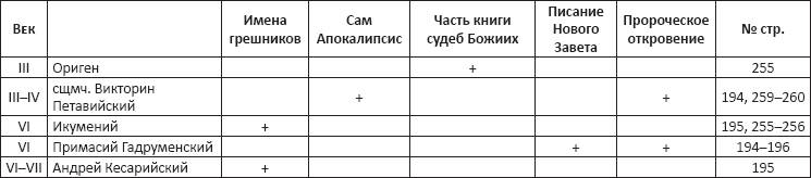 Источник: "Небесные книги в Апокалипсисе Иоанна Богослова / В. А. Андросова.": ПСТГУ; Москва; 2013 ISBN 978-5-7429-0863-0