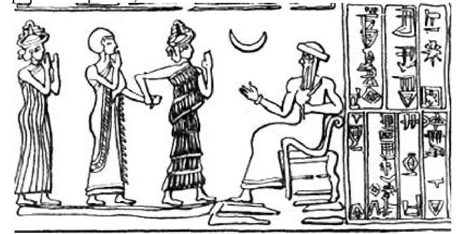 Вавилонский цилиндр-печать с изображением бога луны Сина