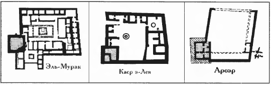 Исследованные феодальные поместья Иродова периода имеют ряд ярко выраженных общих характерных черт146. Они все расположены в возвышенных местах, что даёт возможность стратегического обзора окрестностей и контроля над ближайшими дорогами. Каждое представляет собой комплекс зданий, расположенный на площади порядка нескольких сотен квадратных метров. Многие из них имеют квадратную планировку (например, Эль-Мурак, Каср э-Лея, Ароэр, см. рис. 2.4)147. В углу центрального комплекса жилых помещений находится защищённая башня. Как и в Кумране, в основании башни обычно находится бруствер с наклонным каменным передним скатом, который придаёт дополнительную прочность и предохраняет от подкопа. Набеги разбойников и грабителей были в те времена нередки (что подтверждается свидетельством различных литературных источников). В случае атаки поселенцы могли укрыться в башне, которая могла использоваться в качестве хранилища сельскохозяйственных продуктов в спокойное время. Впрочем, у башни было ещё одно важное предназначение: символизировать власть хозяина над его участком земель. Несколько исследованных поместий имеют сложную систему водоснабжения и сельскохозяйственные приспособления, показывающие, что основным занятием насельников было земледелие. Общей чертой для всех изученных мест является свидетельство их разрушения и опустошения, относящееся к периоду подавления римлянами первого иудейского восстания – т.е. примерно к 70 г. по Р.X.