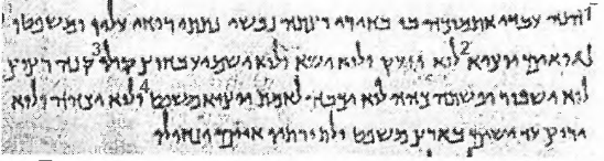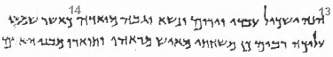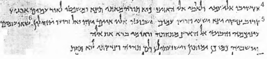 | Стих 6, слова 8–14: תִּבְלֶה כַּבֶּגֶד וְהָאָרֶץ נִמְלָחוּ כֶּעָשָׁן כִּי־שָׁמַיִם – «ибо небеса исчезнут, как дым, и земля обветшает, как одежда». | Строка 20, слова 6–8: אחאלח ברא מי וראו – «и посмотрите, кто создал все это!» |