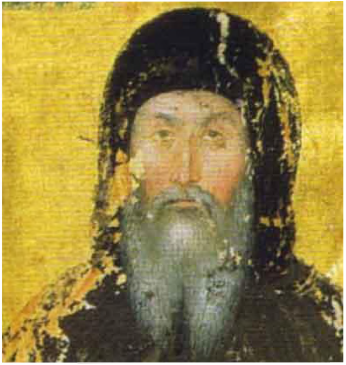 Монах Иоасаф (Кантакузин). Фрагмент из миниатюры, написанной между 1370 и 1375 г. в Константинопольском монастыре Панагии Одигитрии: Иоанн VI Кантакузин как самодержец и монах. Париж, Национальная библиотека.