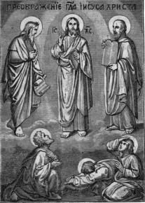 Намерение Иисуса Христа – показать ученикам своим горнюю божественную славу свою, оправдалось совершенно. Небесная слава Богочеловека столько восхитила их, что они желали всегда созерцать ее, пребывая на горе. Наставниче, говорил ап. Петр Господу, добро есть нам зде быти: и сотворим сени три, едину Тебе, и едину Моисеови, и едину Илии. При сих словах светлый облак осенил их и был слышан глас Бога Отца: сей ест Сыт Мой возлюбленный: того послушайте. Во время гласа устрашенные ученики, не могши взирать на сияние лица Господа, как сильнейшее человеческого зрения, пали на землю. Иисус Христос, приступив, прикоснулся к ним и сказал: возстаните, и не бойтеся. Возведши очи свои, они никого не видели, кроме Господа (Мф.16:1–9. Лк.9:18–36).