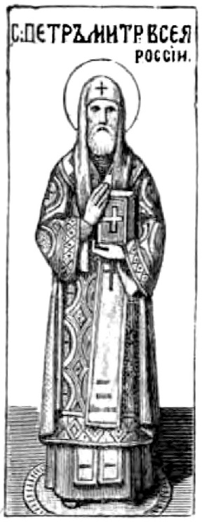 Св. Пётр прибыл из Цареграда в Киев в том же 1308 г., в котором был посвящён, а в следующем году переехал во Владимир, где предшественником его поставлена была кафедра митрополита всей России. Здесь в июне 1309 г. посвятил он Новгород. архиеп. Давида. – Вслед затем отправился он осматривать епархии и в конце июля был в Новгороде. – Зимой следующего года видим его. в Брянске. Удельный князь сего города был изгнан дядей Святославом; но, выпросив помощь у хана, ввёл с собою Татар против дяди. Кроткий святитель убеждал Святослава поделиться княжением с племянником, или совсем отказаться от Брянска, чтобы не проливать крови христианской. Святослав не хотел ни того, ни другого, и потерял в сражении жизнь. Татары ворвались в город, и св. Пётр принуждён был искать себе безопасности в церкви291.