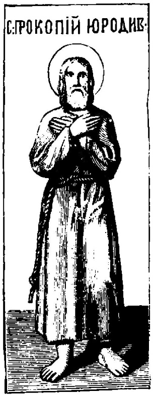 Блаженный Прокопий был современником пр. Трифона Вятского. Спасение души приобретал он добровольным юродством. – В те времена не мало являлось с именем юродивых. – Но на каждом пути спасения нужны чистота намерений и верность совести до смерти. Иначе патр. Иоасаф I в 1636 г. жаловался на юродивых: «иные ходят, писал он, в образе пустынническом и в одеждах чёрных и веригах, растрепав волосы», но не для Господа и не во Господе341. II собор 1667 г осуждал таких же людей: «иже мнятся благоговейни быти, не суть же такови, живут посреди градов и сел в образе отшельника и затворника, волосаты, и в монашеской свитце, иные же и в железах скованы, такожде наги и босы ходят по городам и селам в мире, тщеславия ради, да воспримут славу от народа и да почитают их за святых, ко прелести простым и невеждам»342. – Гибель душе, а не спасение, когда облекаются в образ благочестия с тем только, чтобы свободнее питать свои страсти. Не спасаются и тогда, когда, начав дело духом, оканчивают плотью. Претерпевший до конца спасается. Блаж. Прокопий Вятский, как и Прокопий Устюжский, взяв иго юродства для одного Христа, для Христа нёс его до смерти: до смерти терпел скорби самолюбия, язвимого то насмешками, то бранью, то холодностью людей; до смерти заставлял страдать плоть свою и от недостатка пищи, и от перемен погоды. Он блаженно почил 21 дек. 1627 г. Мощи его почивают в Успенском Трифоновом монастыре, источая исцеления343.