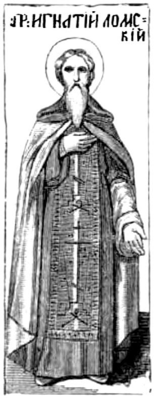 Преп. Игнатий полагал начало иноческому житию в Кирилловом Белозерском монастыре; потом подвизался в 60 вер. от Вологды, близ бывшего города Ломска, и здесь основал Спасскую пустынь, которая долго называлась Игнатиевой Спасской, а потом с 1673 г. Ломовским монастырём и Верхоломской пустынью. Любитель безмолвной жизни, предоставив управлять основанною пустынью одному из учеников своих, удалился из неё на берег р. Сарры в Вадожскую волость и здесь жил отшельником. Когда же и сюда собрались к нему ревнители иноческой жизни, он построил для них храм Покрова Богородицы, и таким образом основалась Вадожская Богородичная пустынь. Преподобный Игнатий почил от трудов своих 28 декабря 7100=1591 г. Мощи его почивают под спудом в закрытой Вадожской пустыни Вологодской епархии369.