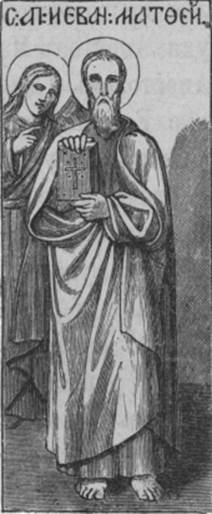 Св. апостол и Евангелист Матфей принадлежит к числу 12-ти Апостолов и в Писании называется также Левий (Лк.5:27). Он есть брат св. Апостола Иакова Алфеева и, до призвания своего в Апостольство, был Галилейский мытарь, т. е. сборщик податей (Лк.5:27. Mк.2:14). Господь узрел его седяща на лестнице, и призвал: по Мне гряди, и, востав, по Нем иде. Оставив все, он пошел за Господом и сделал для Господа в доме своем учреждение велие, т. е. угощение; великое множество мытарей и других, близких Матфею по родству в занятиям, возлежали с Иисусом Христом за трапезою. Господь окружен был тогда совозлежащими Ему учениками, и потом, ближе всех, мытарями и грешниками: это, может быть, оскорбило книжников и фарисеев, и они начали упрекать учеников за Учителя, говоря: почто с мытари и грешники Учитель ваш яст и пиет? Упрек сей услышал Сам Спаситель и кротко ответил фарисеям: не требуют здравии врача, но болящии. Шедше научитеся, что есть: милости хощу, а не жертвы. Не приидох бо призвати праведники, но грешники на покаяние. Фарисеи замолчали, но тогда же отозвались ученики Иоанна Крестителя, здесь бывшие, и предложили Самому Господу новый вопрос: почему ученики Его не постятся, тогда как они сами и фарисеи постятся много? Ответил и сим совопросникам Спаситель и открыл им в притче, что теперь не время поститься ученикам Его; они еще не приготовлены к истинному посту: еда могут сынове брачнии плакати, елико время с ними есть жених? приидут же дние, егда отнимется от них жених, и тогда постятся. Никто же бо приставляет приставления плата небелена ризе ветсе: возмет бо кончину свою от ризы, и горша дира будет и проч. (Мф.9:10–16). С тех пор св. Матфей, вместе с другими учениками Господа Иисуса, пребывал с Ним неотлучно; но в Евангелии ничего более не говорится о Матфее.
