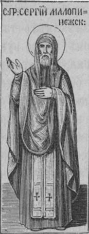 Блаженный Сергий 62 года священствовал при Малопинежской приходской церкви Сольвычегодского уезда. Чувствуя близость кончины, он принял монашество и схиму и почил 16-го ноября 1585 года на 92 г. своей жизни. Память его установлено праздновать в 1655 году258.