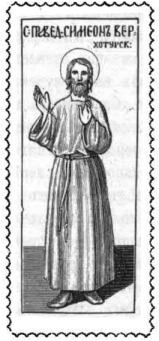 В рукописных святцах читаем: «св. праведный Симеон Меркушинский, новый чудотворец, преставися в лето 7150 (1642).» Праведный Симеон был родом из дворян,120 но, скрыв знатность свою в смирении христианском, вел жизнь бедняка. Переходя из деревни в деревню, шил он платье, преимущественно для бедных; кончив работу, уходил из дома рано поутру, кода все спали, чтобы избежать не только денежной платы, но и слова благодарного за работу.