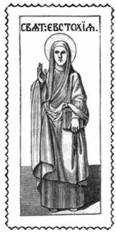 По Римскому мартирологу, сент. 28: «кончина св. Евстохии девы, дочери блаженной Павлы; она, воспитанная при яслях Господа с другими девами, сияла многими добродетелями и переселилась ко Господу». Усуардов умноженный мартиролог, сентября 28: «кончина девы Евстохии, дочери св. Павлы вдовицы; сколько уважал ее св. Иероним, показывают его к ней письма и к матери ее, равно и то, что называет он ее дорогим украшециеи девства и Церкви» р. 518 ed. Migne.