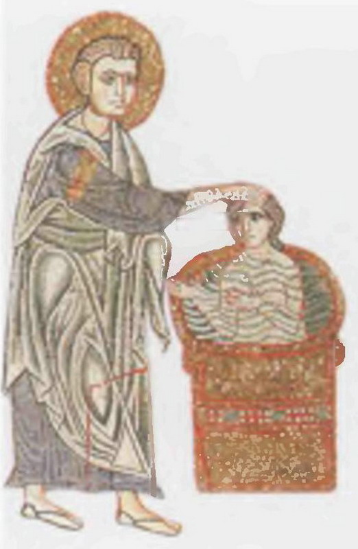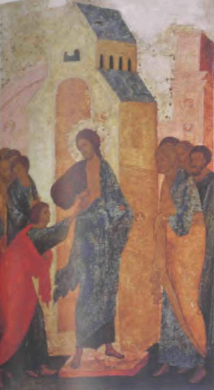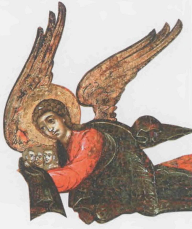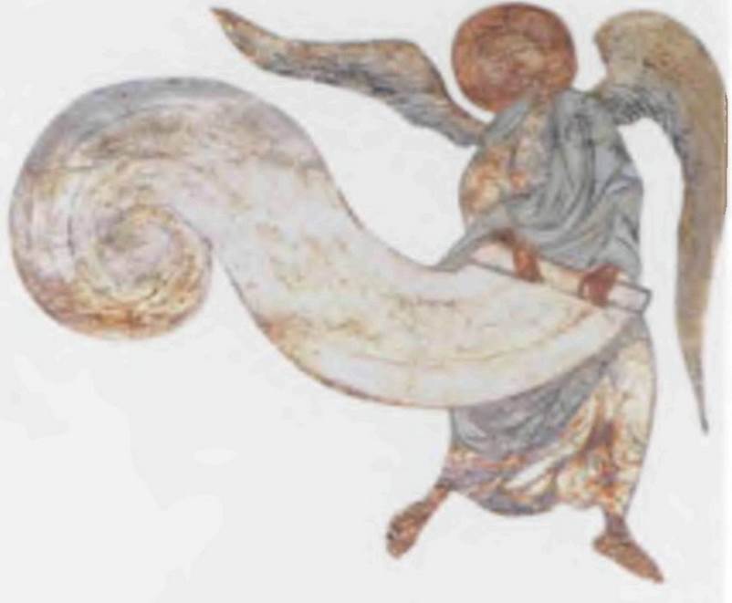 Ангел, сворачивающий небо в свиток. Фреска. Кирилловская церковь. Киев. 12 век