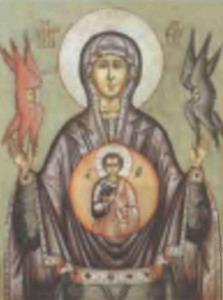 Панагия (греч. «всесвятая») – медальон с изображением Божией Матери. Иногда на панагии может быть изображен Спаситель или один из святых.