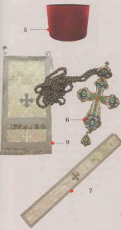 Длинная широкая лента, огибающая шею и обоими концами, сшитыми между собою, спускающаяся спереди. Без епитрахили священник не может совершать ни одного богослужения, Таинства и обряда.