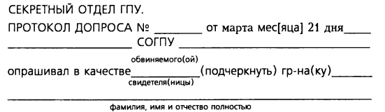 – ЦА ФСБ. Особый архив, д. 1780, т. 23, л. 11–14. Рукописный подлинник, автограф помощника начальника VI отделения Секретного отдела ОГПУ М. Д. Соловьева; подписи патриарха Тихона – автпографы. Бланк протокола допроса Секретного отдела ГПУ; типографский текст бланка выделен в настоящем издании шрифтом. Л. 12, 13, 14 имеют вверху типографский колонтитул: «Показание по существу дела>, внизу – типографскую формулу «Подпись допрашиваемого:». На л. 12 и 13 после этих формул два автографа: «Патриарх Тихонъ (Василій Беллавинъ)». Такой же автограф внизу на л. 11об. Дата в бланке: месяц и число рукой М. Д. Соловьева красными чернилами.