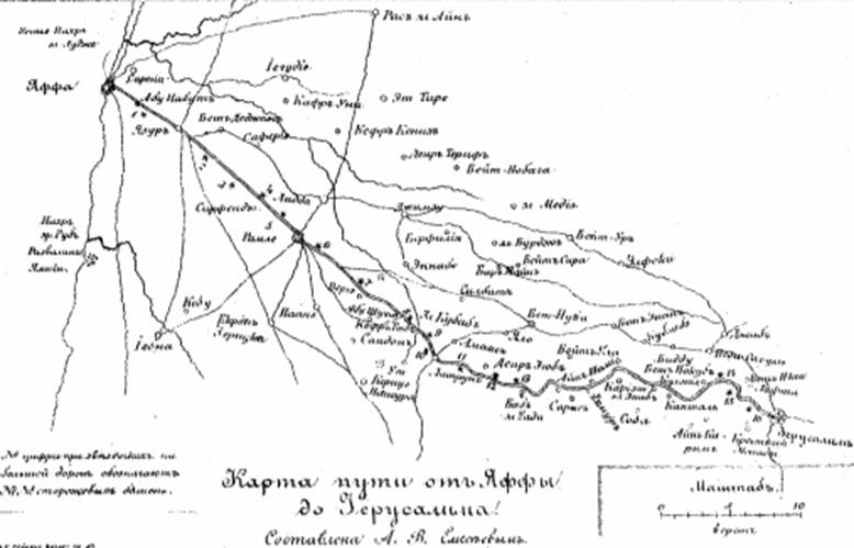 Православное Палестинское Общество, озабочиваясь удешевлением пути в Иерусалнм и на Афон, для православных паломников, нашло возможным брать за проезд, с продовольствием (с/пр.)и без продовольствия (б/пр.), нижеследукшие цены: