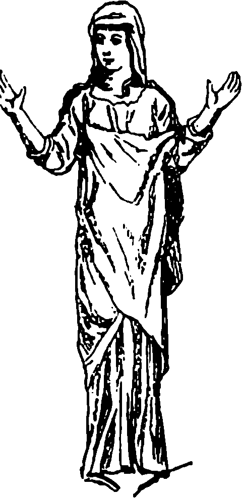 В таком костюме являются, обыкновенно, на стенах катакомб, возле своих гробниц, христианки, умершие в молодых летах.
