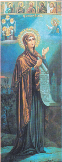 О Пресвятая Дево, Мати Господа вышних сил, Небесе и земли Царице, града и страны нашея всемощная Заступнице.