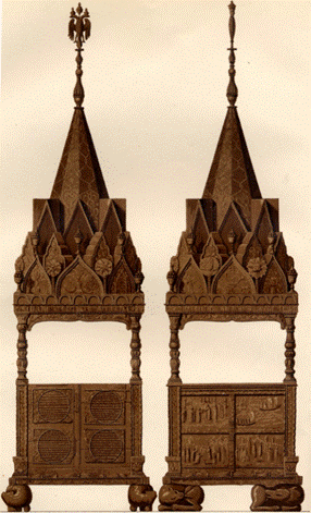До 1812 г. над престолом висел золотой голубь, (изображавший Св. Духа), в коем хранились св. дары; он упоминается в описи 1627.