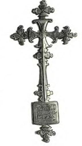 Крест, носимый в руках абисс. священниками, для благословения народа. Снимок с экз., хранящегося в Императорском Эрмитаже (на подножии надпись: Иисус Назорей, царь Иудейский)