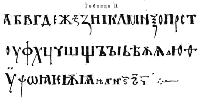 Кириллица и Глаголица. Кириллица есть не что иное, как дополненное несколькими новыми буквами греческое уставное письмо, известное из греческих богослужебных книг IX–XI веков (старшая из них, дошедшая до нас с датой, – Порфириевская Псалтырь 862 года). Кирилловские буквы для звуков общих славянскому языку с греческим в древнейших памятниках не только сходны, но иногда даже тождественны с соответствующими греческими. Что до кирилловских букв для звуков неизвестных, или сравнительно мало известных греческому языку, то относительно можно сказать, что это – одна из разновидностей β, встречающаяся в греческих рукописях (например, в Псалтыри 862 года; надобно иметь в виду, что греки византийской эпохи произносили β, в большинстве слов, как в, в меньшинстве, особенно после μ – в λαμβάνω и так далее, – как б). Буква s, писавшаяся в древнейших памятниках, как ζ, перечеркнутое посередине, вполне, или отчасти (смотреть в таблице II снимок с нее между буквами ж и з, взятый из Евангельских Листков Ундольского XI век), и произносившаяся, как сложный согласный дз, – по-видимому, одна из разновидностей греческого ξ, нередкая в греческих рукописях VIII–IX веков (например, в Стихихаре VIII–IX веков; смотреть снимок в The Paleographical Society № 4, London 1888). Буквы ц и ш по форме и значению так близки к еврейским צ и שׁ (и к их самарянским вариантам), что в восточном их происхождении трудно сомневаться; профессор Д.А. Хвольсон в палеографической таблице при его «Сборнике еврейских надписей» (Спб., 1884), показывает, что еврейское שׁ в IX–X веке иногда писалось почти тождественно со славянским ш. Буква щ, произносившаяся в древнем церковнославянском языке, как шт, представляет вязь (соединение, лигатуру) букв ш и т, из которых вторая подписана под первой (рядом с буквой – вязью щ: хощеши, употребляются простые буквы шт: хоштеши; а изредка вместо щ пишется ш с надписанным над ним т). Буква ю – представляет сокращение iоy греческому ιου; другие иотированные буквы (см. таблицу II) по своему составу повторяют греческие ια, ιε (произносились, как наши я, е), или подражают им. Остальные буквы кириллицы для звуков неизвестных греческому языку уже неясны по своему происхождению. О ж можно думать, что это есть видоизменение своей соседки буквы s в ее вышеуказанной древнейшей форме; надобно иметь в виду, что греки славянский звук ж передавали через свое ζ, так же как и славянский звук з. Буква ч в ее древнейшей форме чаши (см. таблицу II) так близка к ц, что может быть видоизменением последней; нелишне заметить, что греки славянские звуки ц и ч передавали одним и тем же сочетанием τζ. О буквах ъ, ь, ѣ можно сказать лишь то, что они одного происхождения; то же можно сказать о ѫ, и ѧ (последняя буква в некоторых древнейших памятниках имеет две формы, см. таблицу II). Буква ы (обычно пишется ъɪ (смотреть таблицу II), реже ъи, ьи) – несомненно сложная.