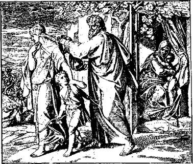 Через год после посещения Авраама тремя странниками у него родился сын, который был назван Исаак, что значит: смех.