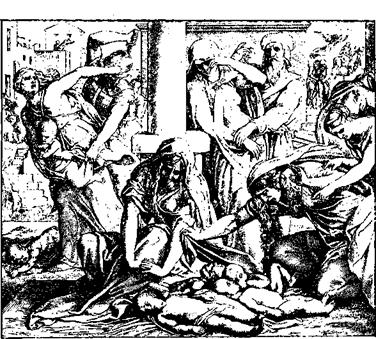 Великое рыдание и вопли поднялись в Вифлееме и окрестностях его, когда матери увидели, как жестоко воины убивали их ни в чем не повинных младенцев.