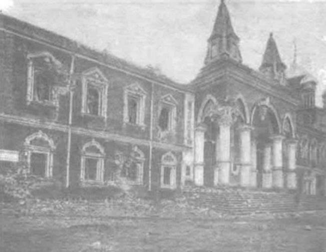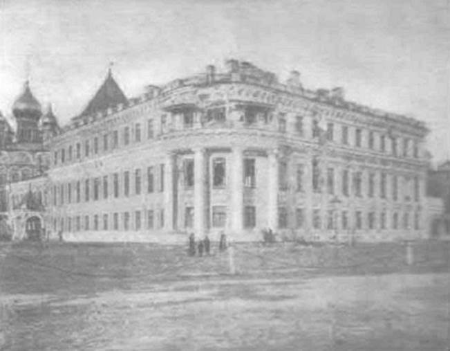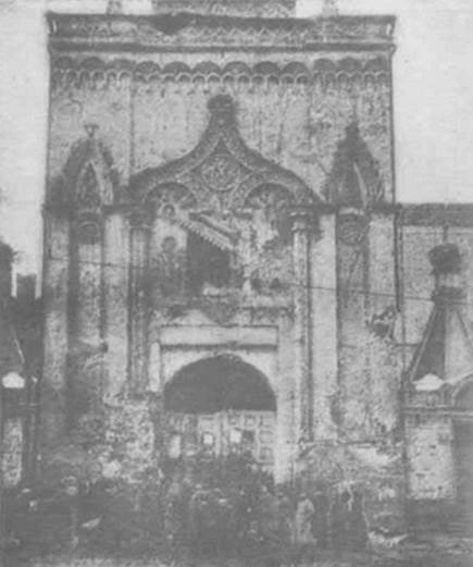 Всероссийская святыня осквернена и поругана в позорном деянии большевиков над Священным Московским Кремлем в октябрьские дни 1917 года.