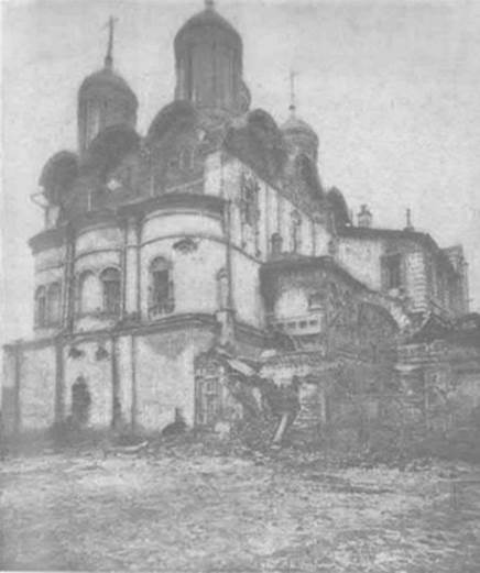 Нельзя считать серьезным основанием то, что артиллерийская канонада, направленная на Кремль, имела цель сокрушить горсть защитников офицеров и юнкеров. Не смея приблизиться к ним, их искали по Кремлю снарядами, разрушая то главу Успенского собора, то Церковь Двенадцати апостолов, то колокольню Ивана Великого, то Чудов монастырь и дальше по порядку все до единого храмы. Хороший, нечего сказать, «стратегический» прием борьбы, весьма характерный для тех, кто к нему прибегает.