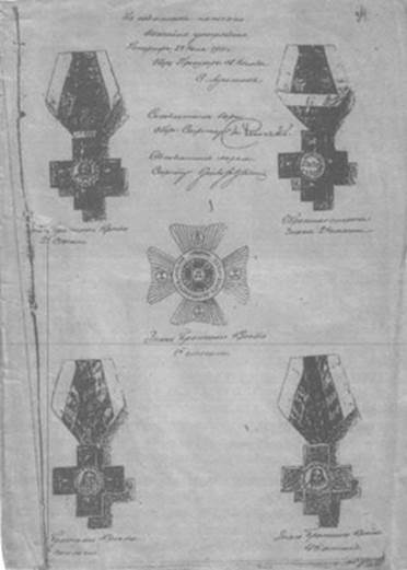 Эскизы знаков Братского креста 4-х степеней. Ксерокопия. Архив ПСTIУ