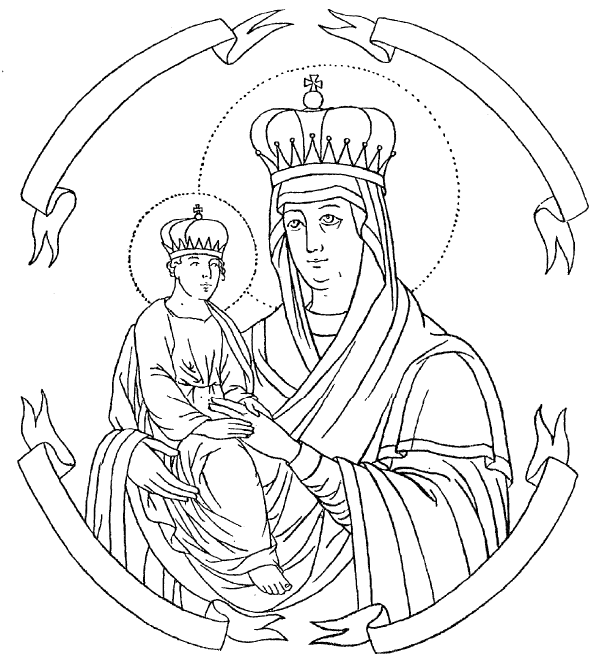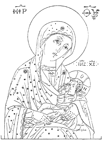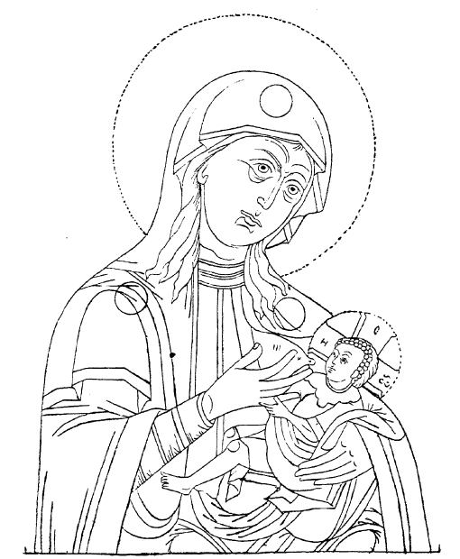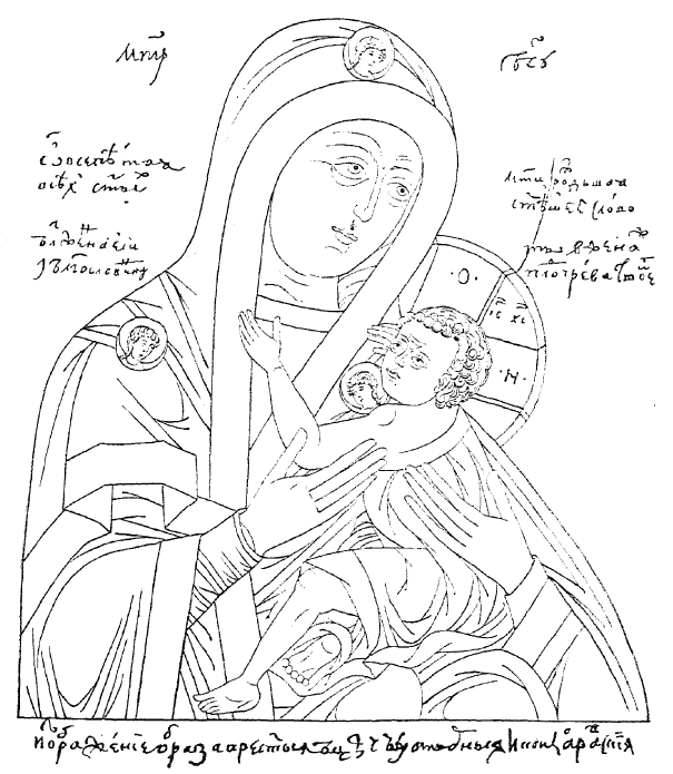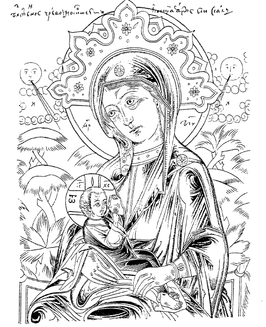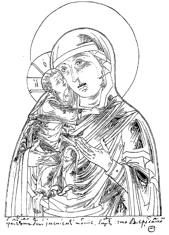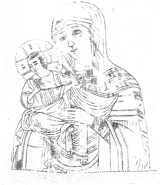 Рис. 27. Икона Б. М. Млекопитательницы в ц. при Хиландарской «Типикарнице», по кальке эксп. П. И. Севастьянова.