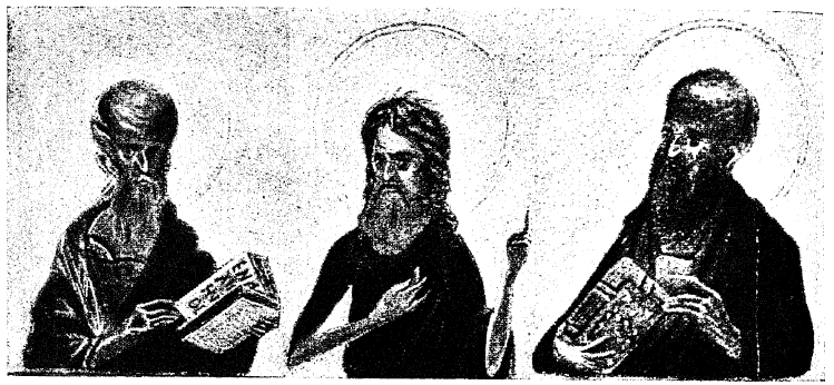 Рис. 40. Ев. И. Богослов, И. Предтеча и ап. Павел на иконе Б. М. в Русском Музее по рис. В. Н. Гринейзена.